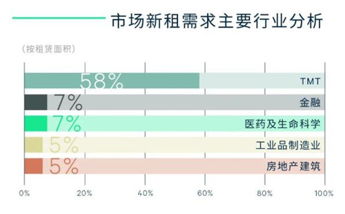 在充裕的可租空間支持下,全年凈吸納量達109.4萬平方米,創歷史新高。全年CBD和麗澤各占全市凈吸納量三分之一。疫情期間受抑制或延遲的需求在今年得以充分釋放,TMT和金融行業合計貢獻全年新租需求的60%,其中超6成來自頭部企業。新增供應潮和疫情引發租戶對品質升級的持續追求和關注。