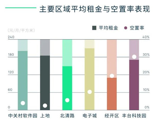 季內泛中關村區域各子市場繼續保持活躍,錄得凈吸納量3.9萬平方米,自2020年下半年以來每季度凈吸納量均維持在3.5萬平方米以上。頭部企業的擴租依舊是區域內主力需求,迅速消化此前因部分行業波動而騰退出來的面積,區域整體空置率下降至3.7%為近四年最低位。其它子市場活躍度環比有所放緩,生物醫藥類企業繼續釋放需求,加速相關定位產業園面積的去化;另外TMT和房地產建筑在經開區、豐臺科技園以及電子城子市場季內亦有表現。
