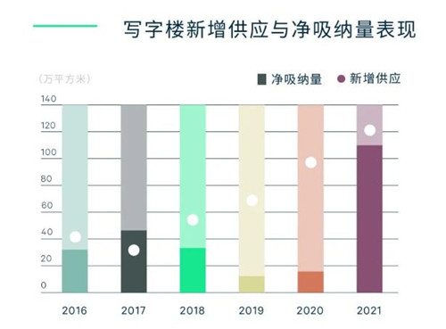 本輪優質寫字樓增量潮使得租戶對辦公場所品質升級的追求充分釋放并成為常態,將長期提升市場需求的能級。短期看,隨著疫情期間被抑制的需求釋放完畢和新增供應回落,2022年凈吸納量預計有所回落,但仍高于歷史平均水平。在‘十四五’規劃推動下,數字經濟、高精尖產業和現代服務業的大力發展將推動市場需求多元化,注入來自新經濟、新賽道的新力量。供需回歸均衡之下,預計明年整體市場租金將會企穩,但個別子市場受新增供應集中影響,租金仍有下行壓力。”
