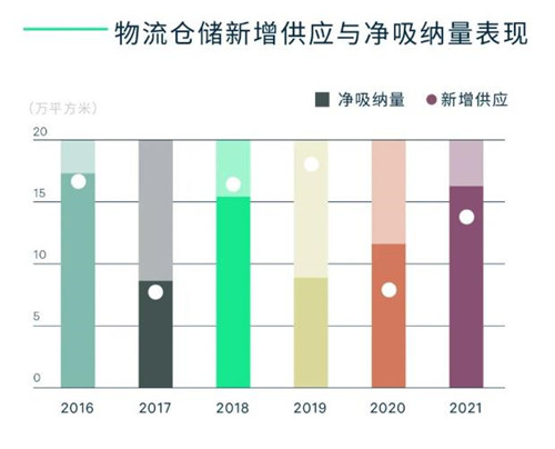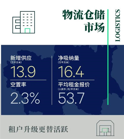 現有項目的租戶調整為擴租和升級搬遷的租戶釋放有限的可租機會,電商節過后短租騰退面積很快被租期更長、租金承受能力更高的租戶消化,季內錄得電商零售及冬奧會相關第三方物流的大面積租賃成交,使得凈吸納量環比回升至約3萬平方米。全年第三方物流成交租賃達總成交面積61%;電商零售雖然直接租賃面積只占15%,但通過物流外包間接貢獻第三方物流需求。