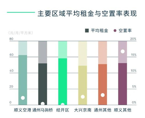 從需求看,天津本季度錄得電商零售及第三方物流行業的大面積成交,全年憑借本市穩定的城配需求,空置率全年均保持在18%以下,年末租金同比上漲1.3%,其中作為電商產業基地的武清區域獲得最大漲幅。而廊坊整體空置率則迅速攀升至53.1%,空置率較高區域本季度租金開始下調,業主以價換量策略推動季內凈吸納量增至7.9萬平方米;而廣陽開發區及北三縣等原本出租率良好的區域租金表現穩定,區域間租金表現分化下,全市年末租金同樣本比同比下降1.1%。