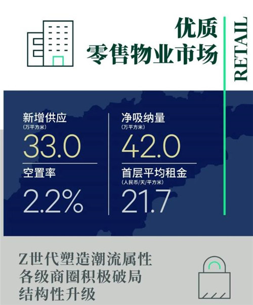 2021年,杭州錄得2個新增優質商業項目交付,分別位于城北和錢江世紀城版塊,助力新興商圈成型。新項目、新品牌的強勢帶動以及消費回流升級趨勢的發酵,全年凈吸納量較去年顯著攀升,空置率接近疫情前水平。值得一提的是,第四季度雖未錄得新項目,但多個分布于城西、武林和城北的現有存量積極調整升級,首店承接上海,且品類在季內進一步向餐飲傾斜,同時杭州電商發達,是“新消費”品牌的主要制造地,更多購物中心正在引入更具流量和品質的正餐、潮奢品牌、新零售等業態。杭州市場以年輕消費力為基礎,潮流文化盛行,蓬勃的首店經濟以及新零售發展之城的政策,支撐購物中心首層租金整體實現回升,報每天每平方米21.7元。