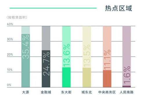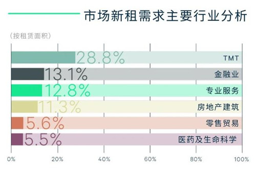 分行業和區域看,鑒于政策引導、產業集聚、可租賃面積充裕及成本因素,2021年各行業跨區域靈活性表現各異。在傳統商務區和城東北,金融業和TMT的需求同比增長最為顯著;而在金融城、大源,生命科學、零售貿易需求同比增長最顯著。