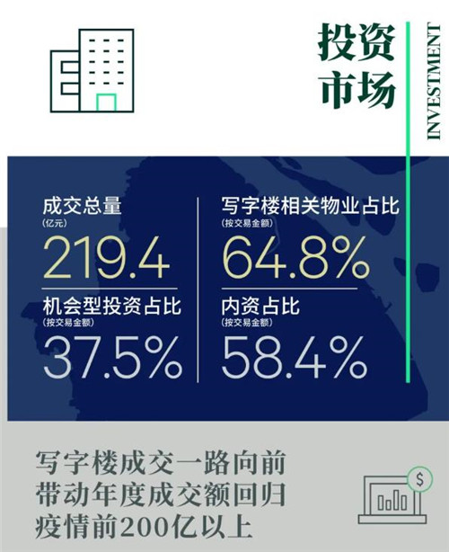 受單宗大額交易帶動,綜合體交易成為年內第二大需求成交類型,該綜合體物業類型包括寫字樓、商業和酒店在內,成交金額高達人民幣66億元。