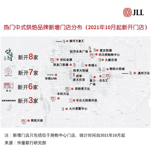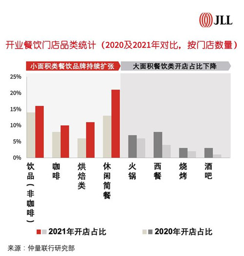 根據仲量聯行對北京2021年餐飲品牌開店面積統計,