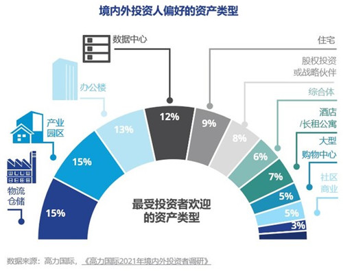 疫情沖擊下倉儲物流資產(chǎn)極具韌性,資本市場對倉儲物流的關(guān)注和配置熱度逐步提升,尤其是一線及周邊衛(wèi)星城市。根據(jù)高力國際《2021年境內(nèi)外投資者調(diào)研》報(bào)告顯示,投資者對物流倉儲的偏好占比15%,躍至資產(chǎn)類型第一位。