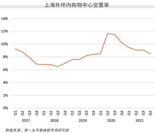 全年平均租金累計上漲1.3%至26.5元,空置率同比下降1.7個百分點至8.5%,自疫情后連續七個季度保持下降趨勢,上海零售市場入駐率基本恢復至疫情前水平。休閑娛樂、汽車、運動及戶外在2021年品牌租賃需求提升顯著,為上海購物中心面積中整體占比同比增長前三位。