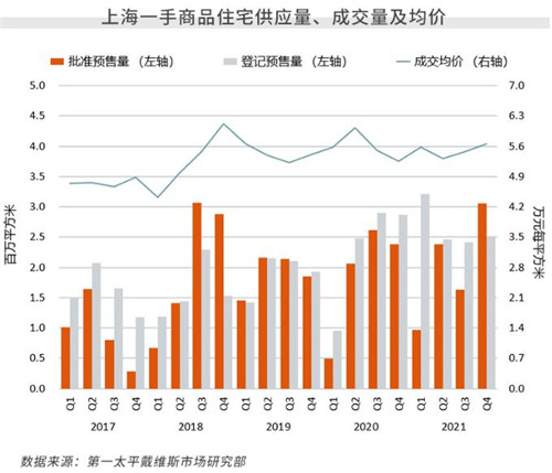 2021年全年成交商品住宅1,058.2萬平方米,較去年上漲14.8%;成交價格同比微降1.1%,達到人民幣每平方米55,140元。全年土拍市場約6成涉宅土地成交位于五大新城板塊,而中心城區,尤其是楊浦、徐匯等區域也迎來了土地放量。預計2022年這些板塊將有多個新項目入市,對中心城區而言為改善客群帶來更多選擇;而對于五大新城則提供了可以匹配新增人口的住房需求。
