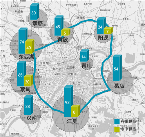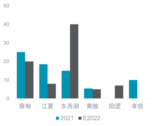 據不完全統計,2022年市場仍將有約80萬㎡的新增供應。其中東西湖板塊的增量占比接近半數,達40萬㎡。