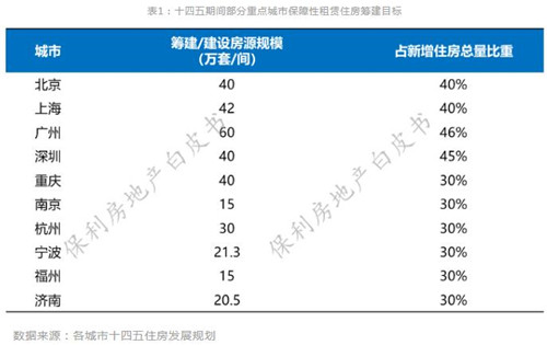 住房保障體系頂層設計明確,租賃住房進入發展快車道,“十四五”期間40個重點城市計劃新增650萬套保障性租賃住房,新增保障性租賃住房占新增住房供應總量的比例力爭達到30%以上。根據浙江等多省份住房十四五規劃,十四五住房供應面積與十三五基本持平,保障性租賃住房占比增加,商品房占比減少,商品房規模進入減量時代。