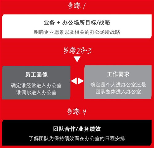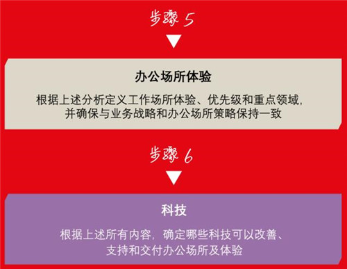 以上六大要素能夠幫助企業了解如何打造混合辦公場所,下圖是確定企業需求并打造混合辦公場所的建議步驟。企業應尋找能夠滿足自身員工特定需求的混合辦公策略,確保員工和團隊在辦公室發揮應有的績效。仲量聯行認為,混合辦公模式打造沒有一個確定之法,“以人為本”地了解員工需求,可以幫助制定正確的混合辦公策略,讓辦公場所的設計與員工及團隊的需求保持一致。