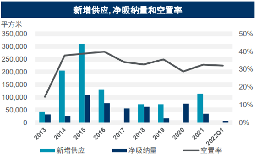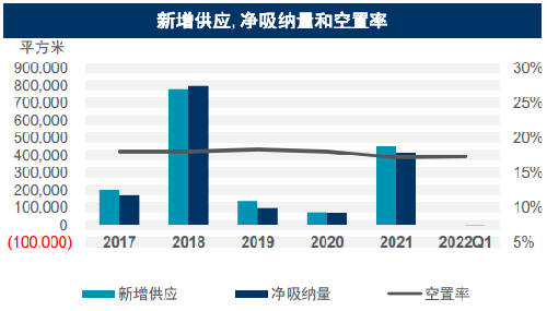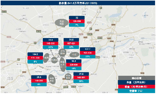 2022年第一季度,沈陽甲級寫字樓市場無新增項目入市,存量與去年年末持平,為121.2萬平方米。