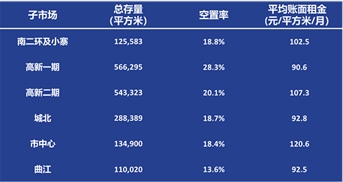 從子市場來看,高新二期市場依然保持活躍,受益于本季度金融、商務服務類租戶入駐,其平均賬面租金水平穩(wěn)中有升,環(huán)比上漲0.3%;而高新一期受到在線教育持續(xù)退租影響,其平均賬面租金均環(huán)比下降0.2%。由于地產行業(yè)調整影響,城北子市場仍處于租戶產業(yè)結構調整狀態(tài),本季度錄得平均賬面租金環(huán)比下降0.4%。