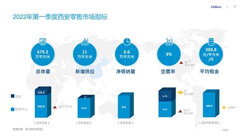 本季度隨著城北板塊的靜安薈奧特萊斯和未央168的入市,將全市優(yōu)質零售商業(yè)存量推高至679.2萬平方米。