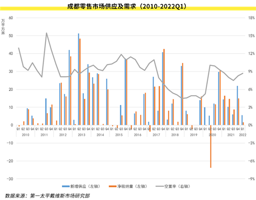 第一太平戴維斯近日發布2022年第一季度成都房地產市場總結:一季度成都甲級寫字樓退租明顯以致市場凈吸納量下滑,能源與原材料行業增勢矚目;零售市場方面,奢侈品品牌加碼布局成都春熙路區域,中優戰略推動鹽市口商圈加速調改。