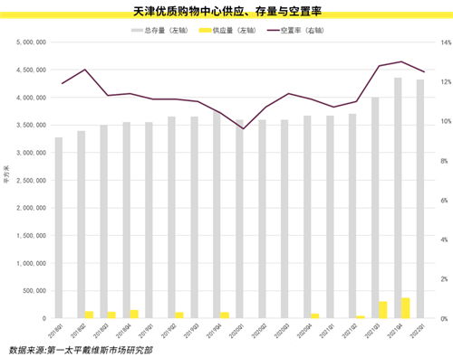 一季度,天津零售市場無新項目入市。受疫情反復影響,實體零售消費出現一定的下滑,但經歷過至暗時刻的實體商業已經具備完善的防疫流程,零售購物的服務與體驗流程得以充分保障。各大購物中心品牌調整步伐并未停擺,其中新能源汽車、甜品、特色餐飲品牌拓展較為活躍。全市平均空置率環比微降0.5個百分點、同比上升1.8個百分點至12.5%。全市范圍內平均租金調整為每平方米每月325.1元,租金指數環比、同比分別下降1%及1.2%。