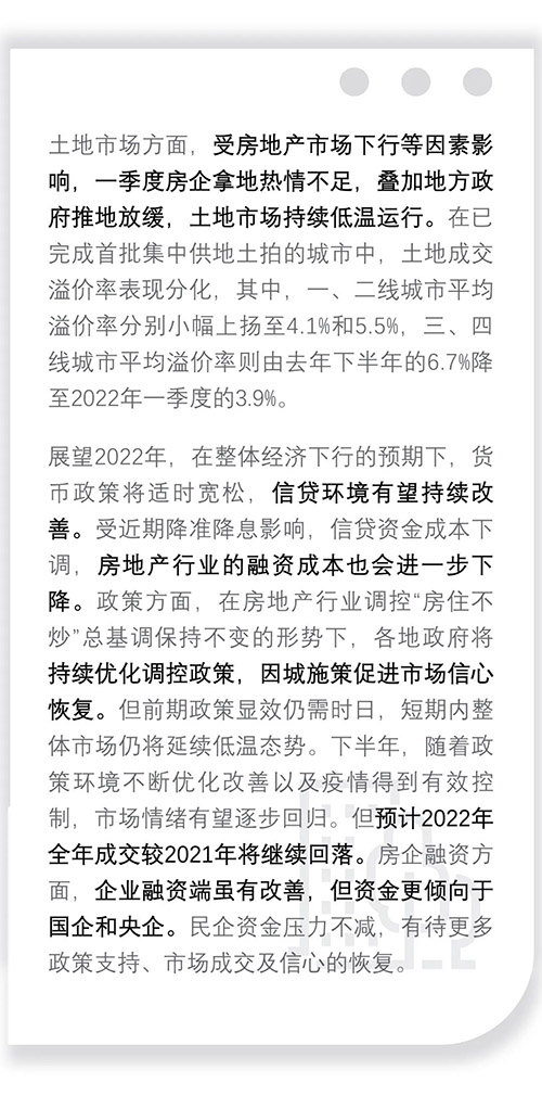 一季度,中國住宅市場政策端、信貸端、貨幣端等多方面迎來邊際放松,整體住宅成交規(guī)模持續(xù)環(huán)比下跌趨勢,房企拿地?zé)崆椴蛔悖僚氖袌霰3值蜏亍?/P>