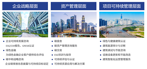 高力國際能夠為企業及其資產提供全面的可持續發展解決方案、ESG戰略制定;同時能對資產和項目的碳排放管理以及綠色健康認證提供全面的咨詢服務,助力企業實現碳中和。