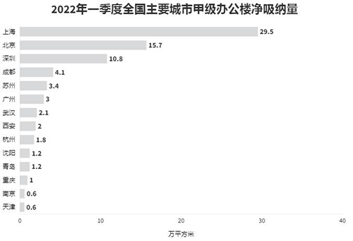多個城市需求增長放緩,一季度全國主要城市整體吸納量較2021年末出現(xiàn)回落,錄得77萬平方米。
