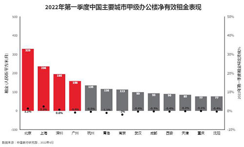 雖全國多地受到疫情反復影響,一線城市辦公樓市場的租金表現(xiàn)穩(wěn)健。北京一季度租金實現(xiàn)三年來首次上漲,環(huán)比轉正增長1.2%。九個子市場租金均保持平穩(wěn)或實現(xiàn)租金增長,其中麗澤的租金環(huán)比增長高達7.5%,租金進入上行通道。上海在疫情爆發(fā)前整體租金保持增長,環(huán)比漲幅達2.3%,但短期內(nèi)經(jīng)濟活動停滯或將阻斷市場租賃互動,預計租金表現(xiàn)面臨壓力;受2-3月疫情影響,廣州租金環(huán)比下降0.9%,深圳得益于大部分企業(yè)去年的租賃計劃未受一季度疫情影響,維持住了租金平穩(wěn),租金環(huán)比上漲0.6%。