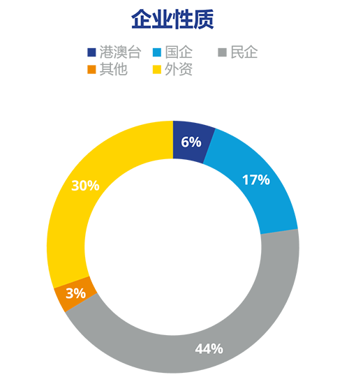 本次受訪企業類型,主要為民企占44%、外資占30%、國企占17%