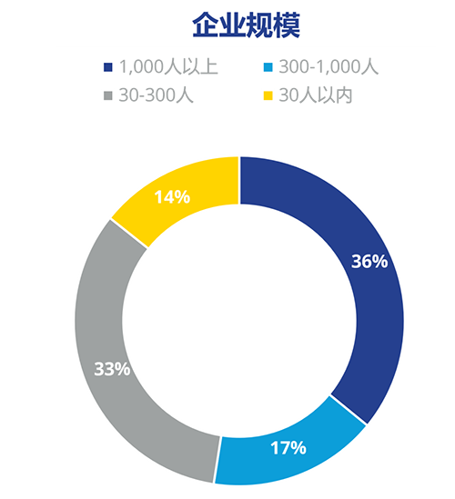 受訪企業規模,1,000人以上企業占36%,30-1,000人企業占50%