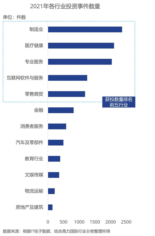 服務(wù)業(yè)中排名前五的主要是醫(yī)療健康、專業(yè)服務(wù)、互聯(lián)網(wǎng)軟件和零售商貿(mào),下文選取部分服務(wù)行業(yè)進(jìn)行具體闡述。