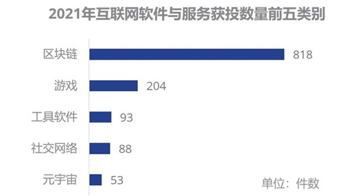 從互聯(lián)網(wǎng)軟件與服務(wù)來看,2021年因元宇宙概念的爆發(fā),元宇宙的支撐技術(shù)區(qū)塊鏈獲得了大量資本的關(guān)注。