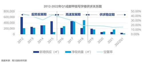 主要是受國內(nèi)疫情反復(fù)、外部國際環(huán)境復(fù)雜影響,第一季度成都甲級寫字樓凈吸納量約2.9萬方,同比下降35%。