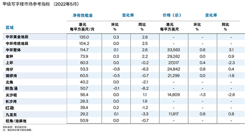 中環及金鐘甲級寫字樓租金增長超越其他地區,錄得0.4%的溫和增長,原因是核心商業區對優質寫字樓空間的需求強勁。五月份,租戶繼續趁機以穩定租金尋求超甲級寫字樓空間,以提升工作空間的素質。