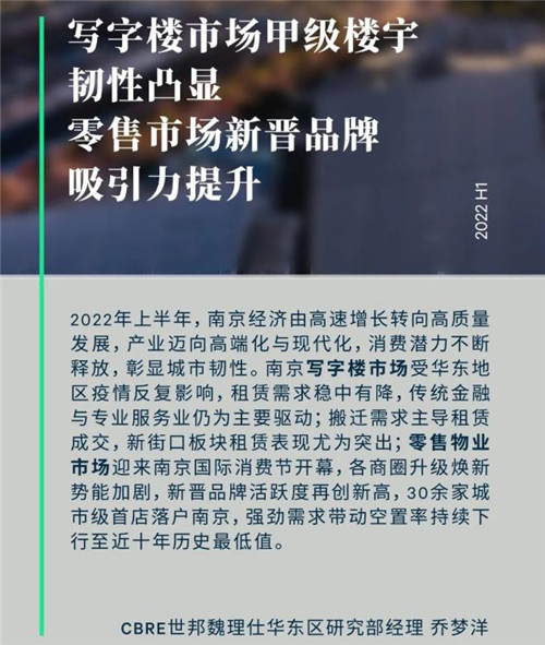 CBRE南京顧問及交易服務部|辦公樓負責人劉承陽表示,受多地疫情反復與部分行業調整影響,上半年南京寫字樓市場需求受到一定程度的波及,而伴隨各類穩定經濟增長政策的及時出臺,疫情防控形勢改善,南京經濟運行有望在下半年逐步企穩,寫字樓租賃需求亦將逐漸走強。未來六個月,南京將迎來31.8萬平方米的新增項目投入市場,充沛供應集中放量河西板塊,短期內或將致使板塊內部去化承壓,而長期來看,伴隨市場觸底反彈,河西板塊有望虹吸更多優質企業進駐,進一步優化區域性產業鏈集群。