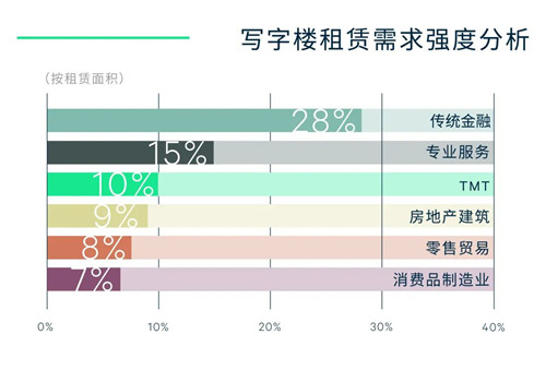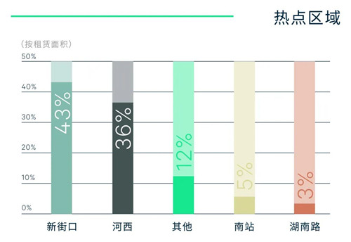 需求方面,傳統金融行業需求堅挺,其中尤以保險企業為主要驅動,季內國資背景保險公司完成大面積整合搬遷至新街口板塊,部分證券、基金公司亦在河西板塊錄得升級搬遷;以律所為引領的專業服務業需求持續釋放,除一向虹吸此類需求的河西板塊外,本季度湖南路與新興板塊均承接相關搬遷需求;TMT需求位居第三,通訊企業于新街口板塊新設分部,新媒體與軟件公司則在季內完成跨板塊搬遷;科技賦能地產行業,智能建造公司搬遷至河西板塊,推動房地產建筑行業需求保持穩定。