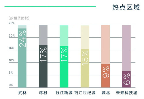 行業新租需求方面,上半年TMT擴張態勢回歸理性,但仍為需求來源首位。細分產業總體向產業互聯網傾斜,以場景內容類軟件開發、生活文娛、物聯網最為活躍,其中蔣村內部搬遷成交凸顯;其次,專業服務類以會計、律所為主升級釋放,集中錢江世紀城和錢江新城新項目;房地產建筑位居第三,建筑設計及智能化工程類積極于蔣村、城北等板塊升級擴租。此外,以證券為主的金融布局錢江新城,而大面積聯合辦公和3C電子產品需求驅動武林成為主要熱點板塊。縱觀全市2,000平方米以下中小面積成交數占據87.8%,現有內資租戶為主搬遷擴租則將近七成。行業退租區位來看,TMT調整主要集中城西,黃龍、濱江等其他子市場影響有限;房地產及地產基金則分布城北、錢江新城多板塊;此外,教育為主消費服務需求在黃龍和錢江新城也出現部分縮減撤遷。