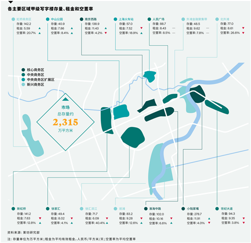 [提要]第二季度上海甲級寫字樓市場共有兩個新項目竣工交付,為市場總計帶來123,682平方米的寫字樓面積。預計未來兩年,每年都將會有超過150萬平方米的辦公項目交付,對于樓宇業主以及寫字樓市場都會存在去化壓力。