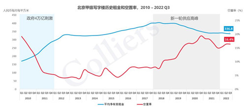 高力國際華北區董事總經理嚴區海表示,2022年第三季度,北京甲級寫字樓市場凈吸納量恢復至-6,400平方米,需求強度相較二季度出現了明顯改善。本季度市場無新增入市的甲級項目,因此部分子市場的空置率上升主要是由于市場存量項目釋放出更多空置面積所致。全市場空置率維持在16.4%的水平,凈有效租金穩定在336.8元每月每平米。在核心子市場方面,除了受益于大宗租賃成交的東城商務區和高性價比的麗澤商務區出現比較積極的去化,其他子市場空置率均呈現不同程度的上升。