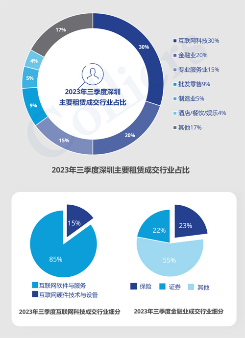 在子市場,前海凈吸納量位居各片區(qū)之首,主要得益于新供應(yīng)項(xiàng)目預(yù)租及自用,以及存量項(xiàng)目打造專業(yè)樓宇、提供多樣化的入駐補(bǔ)貼等吸引租戶進(jìn)駐。科技園在標(biāo)桿項(xiàng)目去化較好的帶動下,扭轉(zhuǎn)過往連續(xù)三個季度負(fù)吸納的局面,錄得超1萬平方米凈吸納量。寶安中心區(qū)優(yōu)質(zhì)項(xiàng)目同樣以較高的性價(jià)比吸引優(yōu)質(zhì)客戶進(jìn)駐,涉及科技、教育、金融、建筑等多個行業(yè)。
