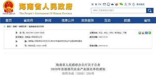房訊網訊 近日,海南省人民政府辦公廳發布關于公布2020年省級現代農業產業園名單的通知,認定海口油茶良種示范林產業園等18個農業產業園為海南省級現代農業產業園。
