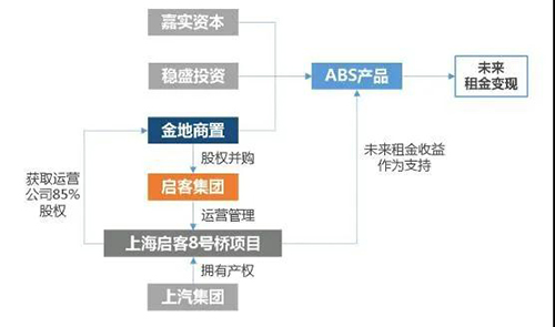 上海8號橋項目由啟客運營十余年,商區(qū)成熟且租金來源穩(wěn)定,租金年均增長超過7%,在2016年10月被金地商置收購。金地商置運營一年多的時間后,聯(lián)合嘉實資本和穩(wěn)盛投資,以8號橋項目未來租金收入作為支持,于2017年11月在金融市場發(fā)行了ABS產(chǎn)品,發(fā)行量為4.2億元,提前變現(xiàn)了未來3.5年的租金收入,成功通過金融手段等一系列操作實現(xiàn)資金的快速回籠。