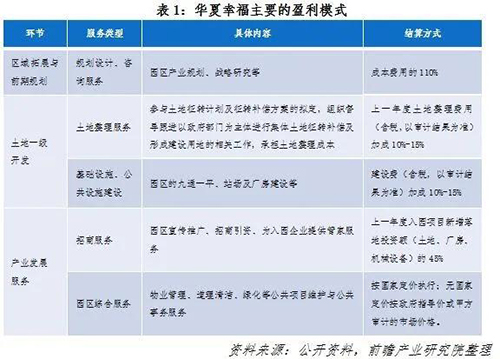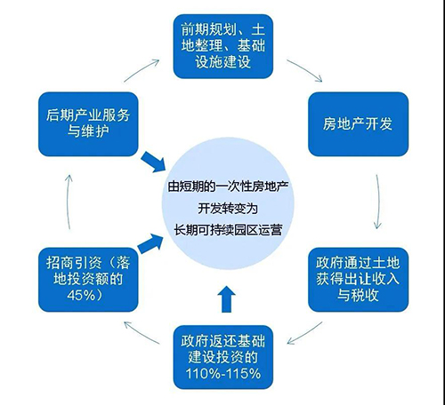 主要盈利模式: 一是通過墊付園區(qū)前期開發(fā)、基礎(chǔ)設(shè)施建設(shè)費,獲得政府10%~15%的利息收入;二是園區(qū)招商引資返還收入,即園區(qū)新增固定資產(chǎn)投資額或新增財政收入的45%;三是園區(qū)配套地產(chǎn)開發(fā)收入;四是園區(qū)土地升值收益。