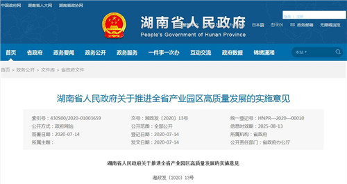湖南省人民政府關于推進全省產業園區高質量發展的實施意見