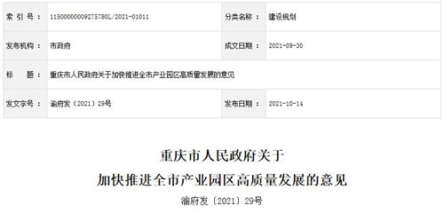 重慶市人民政府關于加快推進全市產業園區高質量發展的意見