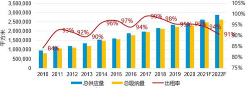 受到疫情影響,部分項目入市時間仍有推遲,預計至2022年,華北區域會有部分新增供應,但市場需求強勁,預計整體出租率仍會繼續維持較高水平。