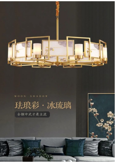 月影燈飾的這盞琺瑯彩全銅中式吊燈,將傳統的琺瑯彩工藝與黃銅相結合,讓你在頃刻之間仿佛穿越千年,感受清朝琺瑯彩工藝之美。