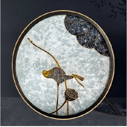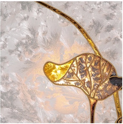 現代的琺瑯彩多為珍品,放在家中屬于收藏級。月影的這盞銅燈,是匠師全程手工制作,從研磨釉漿,到勾線紋理,再到3重上色,3重燒制,最后到描邊收金,無一不展現手作的魅力。同時采用古法技藝呈現立體冰裂紋,在燒制過程中的獨特開裂,展示出無限的自然美。