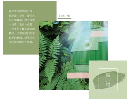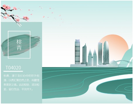 2021建筑外立面色彩趨勢,三棵樹回應人對詩與遠方的訴求,選取桃青為2021年度色彩主題色,以青匯聚自然之色,構建理想美好之境,在城市中營造一片世外桃源。遠近相安,濃淡相宜,留白生遠,平淡持久。