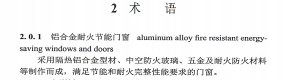 由于耐火門窗產品走向市場時間還不長,規范中只能找到耐火完整性的解釋,耐火與節能的門窗產品一直沒有具體定義,直到山東省地標《鋁合金耐火節能門窗應用技術規程》DB37/T5138頒布,首次給出標準定義和相關技術要求;