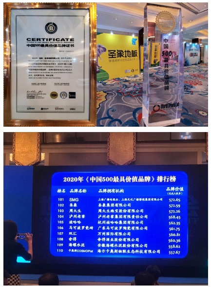 8月5日,2020年第十七屆世界品牌大會暨中國500最具價值品牌發布會在北京隆重舉行。國際權威品牌評審機構——世界品牌實驗室(WorldBrandLab)發布了2020年“中國500最具價值品牌”排行榜。中國家居行業領導品牌圣象以高達572.59億元人民幣的品牌價值榮膺榜單,連續四年入選公信力和認同度最高、權威性最強的中國品牌國家隊陣容。