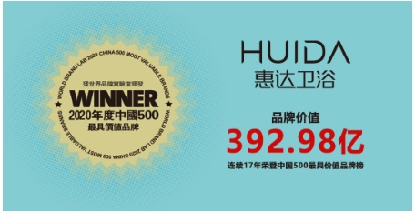 8月5日,由世界品牌實驗室(World Brand Lab)主辦的(第十七屆)“世界品牌大會”北京舉行,會上揭曉了2020年《中國500最具價值品牌》報告,惠達衛浴與國家電網、海爾、騰訊、中國人壽等品牌共同入圍榜單,實現連續17年上榜,最新品牌價值392.98億,排名第178位,同比2019年增長44%,繼續保持行業領先。