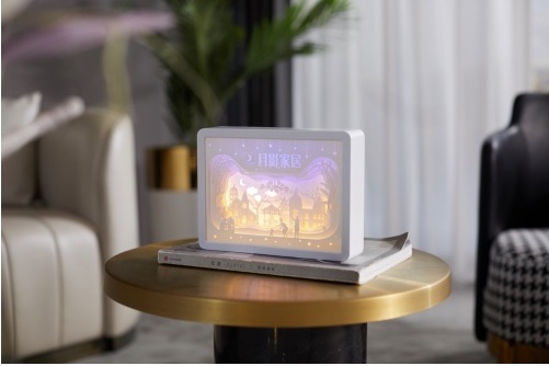 全燈通過鏤空雕刻工藝、浮雕工藝和多層立體結(jié)構(gòu),以紙為材料,呈現(xiàn)出巧奪天工的藝術(shù)審美。在白天不開燈時(shí),這款紙雕燈就是桌面上最佳裝飾品。夜晚,點(diǎn)亮紙雕燈,三色光源交相輝映,渲染出生活多層次的美。藍(lán)光映射星空,傳遞浪漫而靜謐的唯美感;白光烘托月光和白云,演繹純凈而透亮的光感;黃光點(diǎn)亮家園,點(diǎn)亮的更是美好生活的溫暖與融合。作為氛圍燈,夜晚臥室的私人空間更有情調(diào);作為小夜燈,伴你入眠,溫馨守護(hù)每個(gè)暗夜的夢鄉(xiāng)。