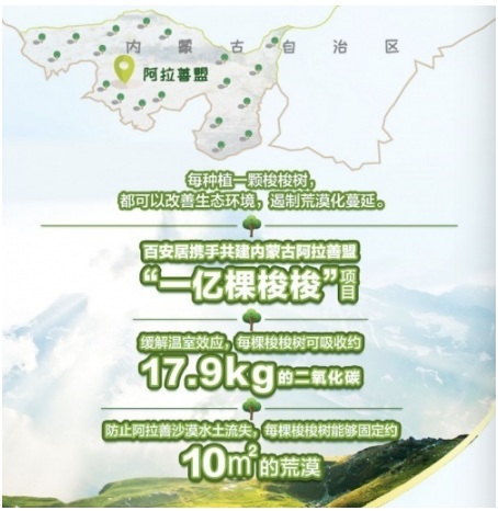 從日常經營的“環保家裝”理念到助力實現“一億棵梭梭”的環保公益,百安居的環保事業體現出從呼吁共創到落地生根的脈絡,具有極強的社會影響力與凝聚力;同時更以個體化滲透和體現品牌競爭力的核心理念賦能行業公益思考,以領航者之姿引領行業環保公益新發展道路。百安居倡導的環保家裝,讓節能減排融入城市家居生活的每個角落,助推國家碳中和目標的實現。